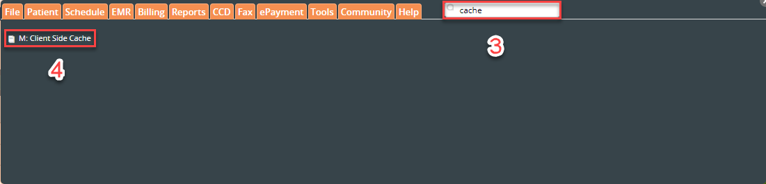Click into the menu's search bar, and type in 'cache' (without the quotes).