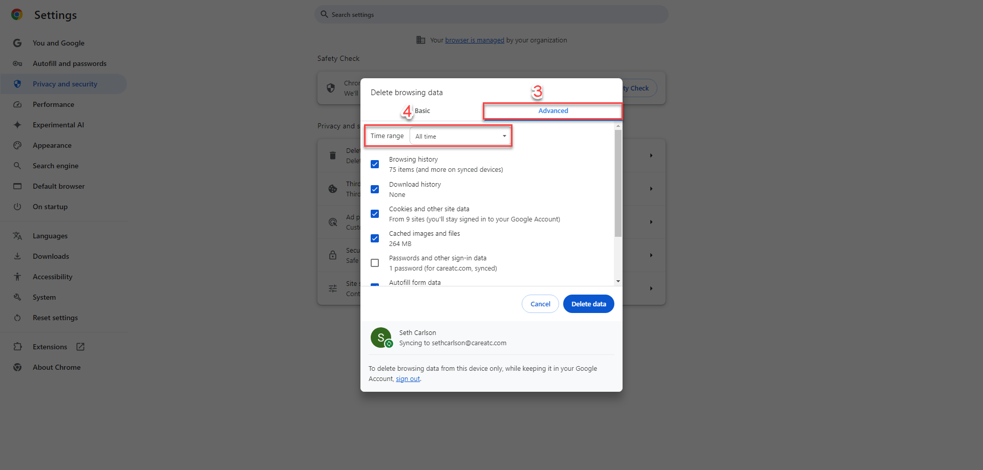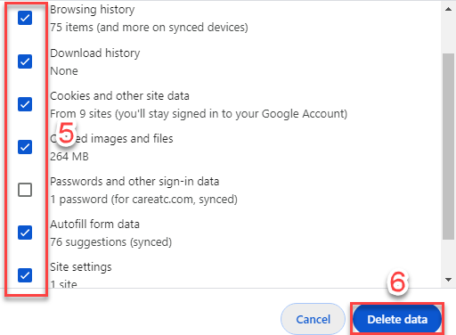 Make sure every box is checked EXCEPT for 'Passwords and other sign-in data'. You will have to scroll down some to be able to see and check all the boxes.
