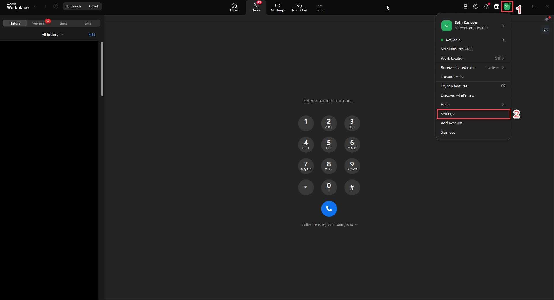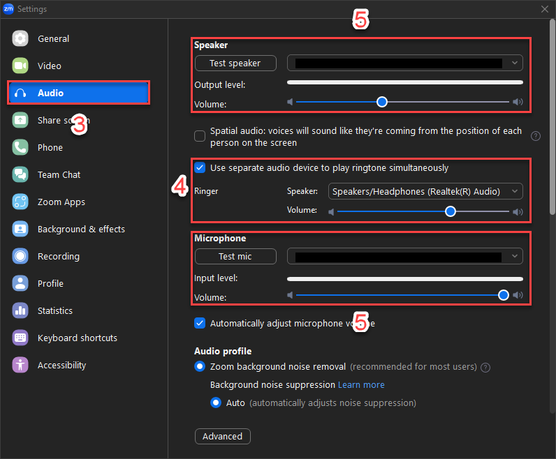 - Set the Speaker and Microphone to your headset by clicking the dropdown